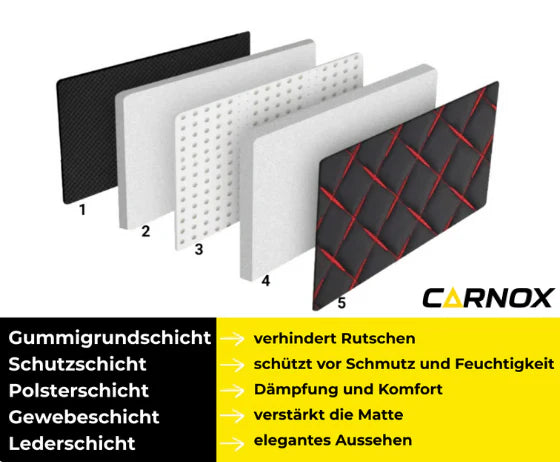 Mit den maßgeschneiderten CARNOX Luxus-Fußmatten hebst du den gesamten Innenraum auf ein neues Level.